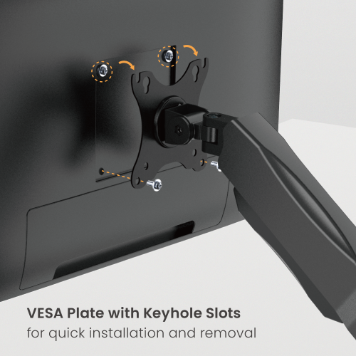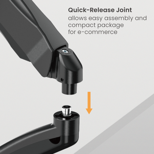 Detachable VESA Plate | Quick release joint | Spring Tension Mechanism | Easy Top side installation | Built in cable management | Smart base with USB-A & USB-C ports
